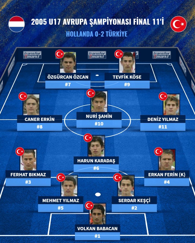 2005 yılında, İtalya’da düzenlenen 17 yaş altı Avrupa Şampiyonası’na katılan millilerimiz, Abdullah Avcı önderliğinde turnuvaya iddialı şekilde hazırlanıyordu. 1988 doğumlu genç yıldızların ağırlıkta olduğu ay-yıldızlı ekibimiz, A Grubu’nda ev sahibi İtalya’nın yanı sıra, futbol devi İngiltere ve Belarus’la eşleşmişti. Gruptan İtalya ve Belarus’u mağlup ederek çıkan millilerimiz; yarı finalde Hırvatistan’ı, Finalde de Hollanda’yı yenerek Avrupa şampiyonu olmuştu.
