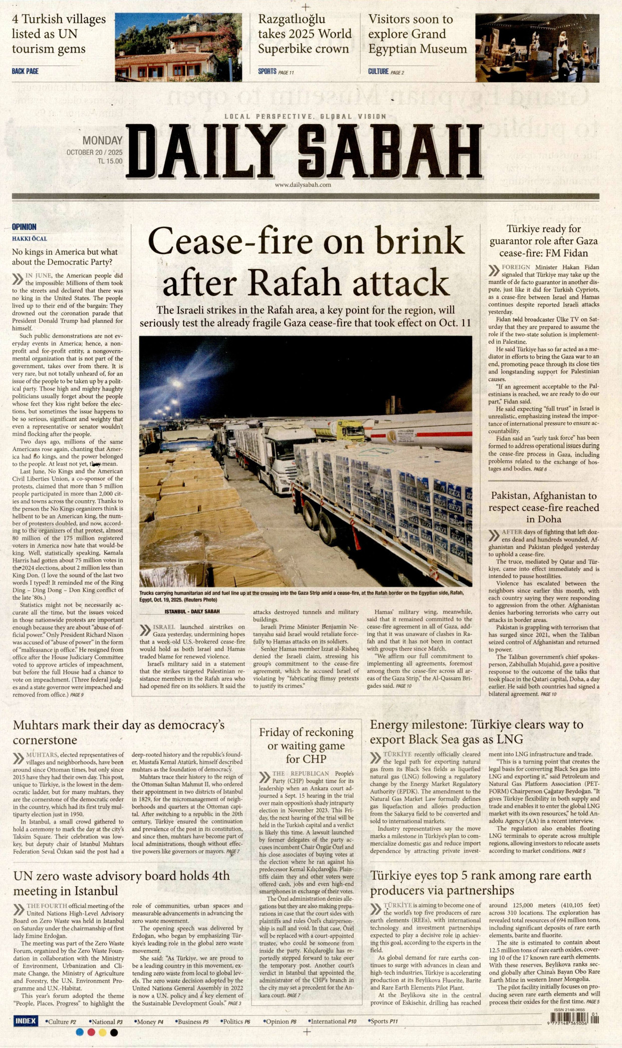 DAİLY SABAH Gazetesi 20 Ekim 2025, Pazartesi Günü Manşeti